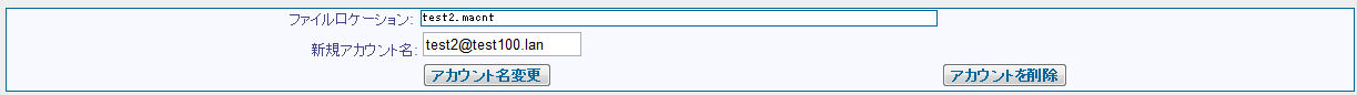 最下部で設定変更を行います。「新規アカウント名」の欄に、移行したいドメイン名のついた新しいメールアドレスを入力し、「アカウント名変更」ボタンをクリックします。